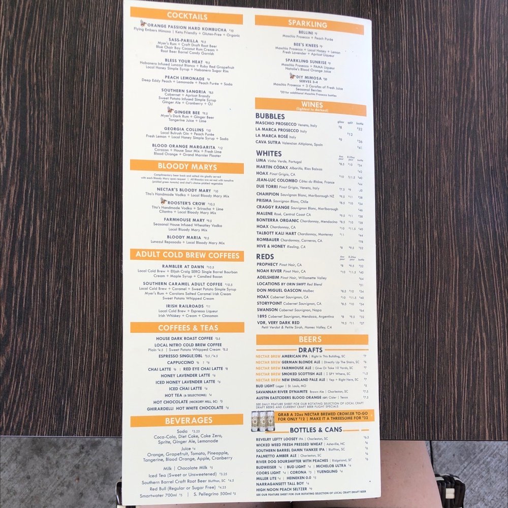 Welcome to the delightful realm of Nectar Farm Kitchen Old Town, where American breakfast and brunch take center stage. Nestled in Bluffton, South Carolina, this trendy eatery invites you to experience a farm-to-table approach that highlights fresh, locally sourced ingredients. The menu dazzles with options ranging from their delectable Kitchen Sink Bowl to the iconic fried green tomatoes, each dish crafted with care and bursting with flavor. Don't miss the rich offerings of adult cold brew coffees, like the unique Caramel Sweet Potato Coffee, perfect for those seeking a twist on conventional beverages.